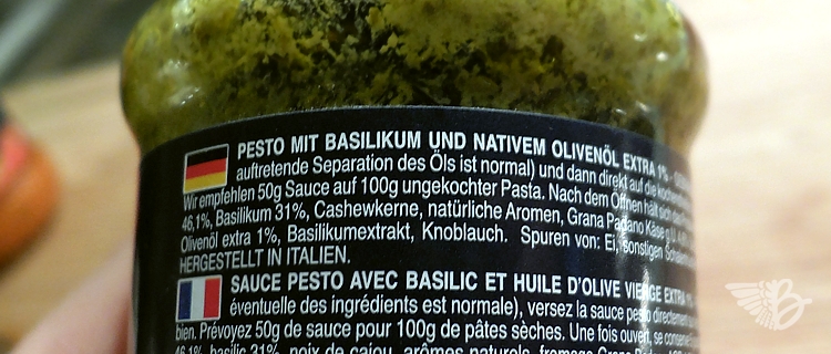 Was mir nicht so ganz klar war, warum man hier jetzt Sonnenblumenöl für das Barilla i Pesti verwendet. Olivenöl würde da doch eigentlich besser passen, finde ich. Und warum Cashewkerne, statt den Original Pinienkernen? Barilla sagt hierzu folgendes: “In dem Rezept werden italienisches Basilikum, Pecorino Romano- und Grana Padano und hochwertiges Sonnenblumenöl verwendet. Bis vor einiger Zeit haben wir Pinienkerne benutzt. Auf Grund von Befürchtungen über deren Qualität in Bezug auf die Stabilität haben wir uns entschieden, Cashewnüsse zu verwenden. Die Kreuzkontamination durch Pinienkerne führt zu einem metallischen Geschmackseindruck. Der Herkunftsnachweis für geschmacklich auffällige Pinienkerne wurde demnach 2010 erstellt.”