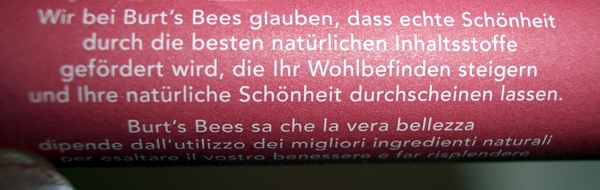 Es hat mich etwas verwundert, dass eine Firma die damit wirbt Inhaltsstoffe anzugeben diese nicht auch auf der eigenen Burt’s Bees Webseite angibt – das wäre doch eigentlich logisch gewesen, finde ich. Oder?