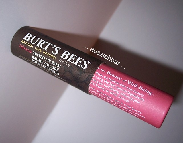 Burt’s Bees ist eine dieser Firmen und bietet derzeit 6 verschiedene Tinted Lipbalms an. Die Farbe HIBISKUS stelle ich heute vor.