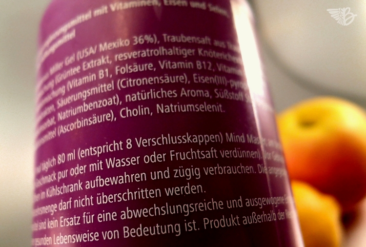 Der LR Mind Master Brain & Body Performance Drink muss nach dem ersten Öffnen im Kühlschrank aufbewahrt werden. So “lacht” er mich dann auch jedes Mal an, wenn ich den Kühlschrank öffne. Achja und die Tagesdosis von 80ml, die man keinesfalls überschreiten soll, hat ca. 40 kcal.