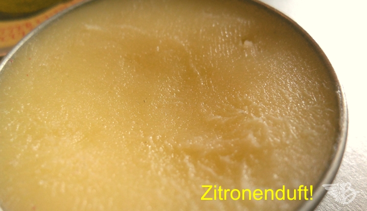 Der Duft der Nagelhautcreme ist echt super lecker. Es riecht so toll nach Zitrone und wirklich natürlich. Als ob man gerade ein Glas frisch gepresste Zitronenlimonade vor der Nase stehen hat. Frisch, sommerlich und trotzdem leicht warm auf der Haut fühlt sich das Wachs an. Es handelt sich ja um eine Fettpflege und daher wird die Creme durch die Handwärme gleich schön geschmeidig und lässt sich gut einmassieren.