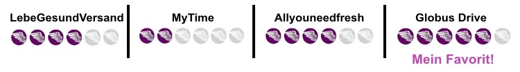 Nachdem es bei mir mit MyTime nicht geklappt hat habe ich bei AllyouNeedfresh bestellt. Vom Sortiment her absolut gleichwertig mit MyTime aber hier funktionierte alles viel reibungsloser für mich. Das shoppen ist einfach, Angebote werden optisch hervorgehoben und es gibt auch Schnäppchenecken wie z.B. die Rubrik “ReadytoEat” oder Sonderangebote.