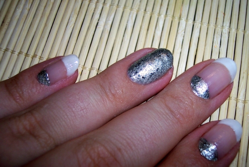 Nun der Silberne Halbmond Hinten; hierfür nutze ich Hollywood Nails Colour Polish No. 58 “Silver”.