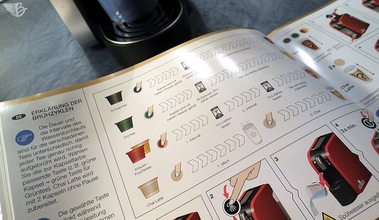 Es gibt zusätzlich auch noch Reinigungskapseln. Das innere der Maschine kann man ja nicht reinigen. Diese Reinigungskapseln werden genau wie die Teekapseln einfach eingelegt und nach Bedienungsanleitung ein Reinigungsvorgang gestartet. Bei regelmäßiger Nutzung ist das zwei Wochen sinnvoll – ausser man hat die Milchkapseln öfters im Einsatz dann muss öfters gereinigt werden.